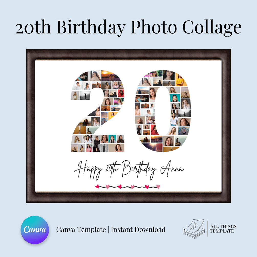 20th Birthday Photo Collage Template – Customisable & Easy to Use!
