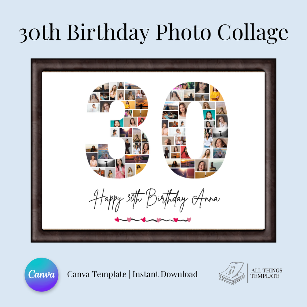30th Birthday Photo Collage Template – Customisable & Easy to Use!