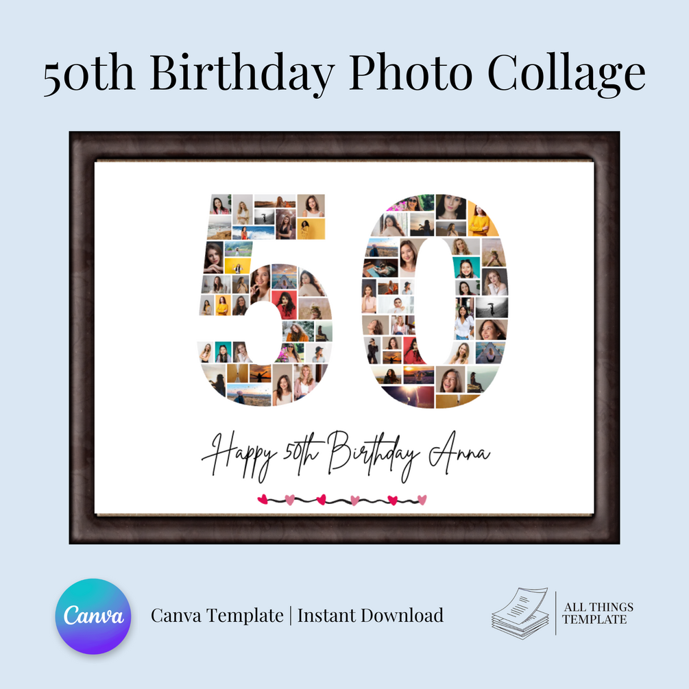 50th Birthday Photo Collage Template – Customisable & Easy to Use!