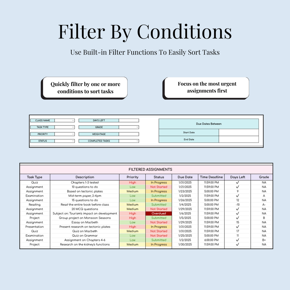 Take control of your assignments! Get the Assignment Tracker Spreadsheet today!