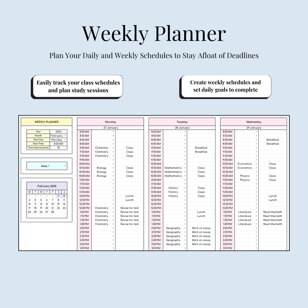 ✔ Weekly Planner – Plan your schedule and class timetable